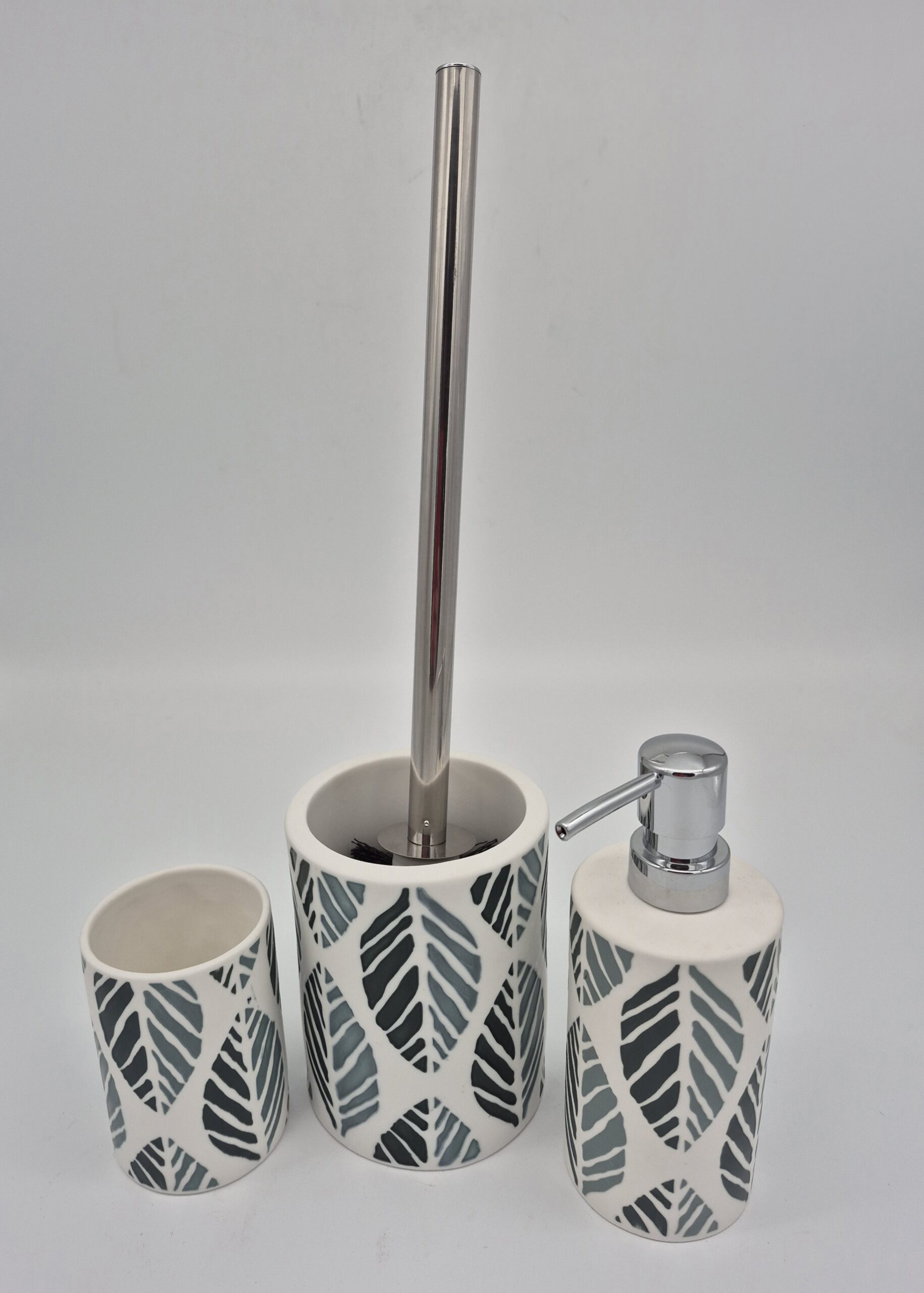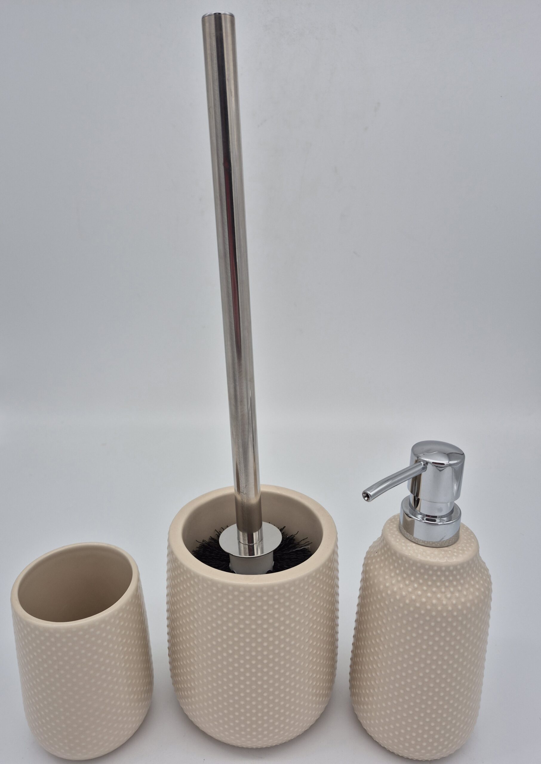 3-teiliges Set: Enthält: 1 Seifenspender, 1 Toilettenbürste mit Halter, 1 Zahnputzbecher.