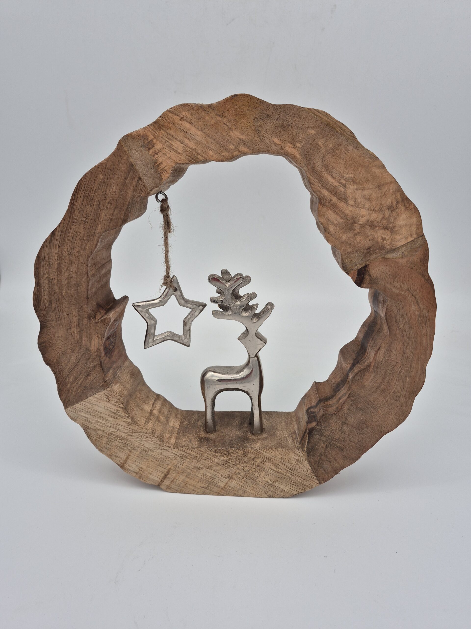 Materialien: Mango Holz mit Stern, Aluminium Hirsch